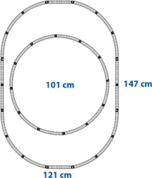 Sistemul de șine permite crearea a două circuite, unul interior cu dimensiuni de 101 cm și unul exterior de 147 cm.