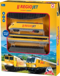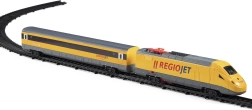 Trenul model RegioJet de la Student Agency este alegerea ideală pentru toți iubitorii de căi ferate. Cu acest set original, care include o locomotivă galbenă și un vagon galben, puteți pleca în aventuri de neuitat. Setul include 12 șine curbate și 6 șine drepte, permițând să creați o cale ferată cu dimensiuni de până la 147 x 121 cm. Șinele pot fi ușor aranjate pentru a crea două circuite pentru o operare realistă.