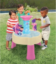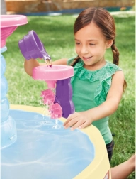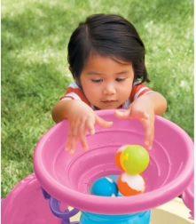 LITTLE TIKES Spiralin' Seas este un parc acvatic distractiv care îi atrage pe copii în lumea experimentelor cu apa. Datorită designului roz-bej, turnului în spirală și roții de apă, copiii observă curgerea, rotirea și stropirea, dezvoltând în același timp motricitatea fină, coordonarea mână-ochi și abilitățile sociale în jocul împreună.