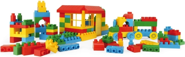 Setul de cuburi Wader conține 132 de elemente colorate, de forme diferite, care permit crearea multor construcții fantastice.