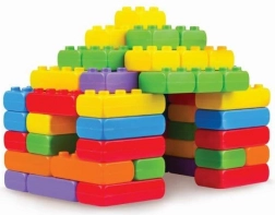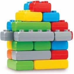 Setul de 33 de piese mari în trei forme le permite copiilor să construiască căsuțe, turnuri și pereți. Cărămizile ușoare și ușor de îmbinat stimulează imaginația și jocul independent.