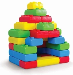 Jocul cu cărămizi de mari dimensiuni dezvoltă coordonarea și abilitățile motorii, creativitatea și colaborarea în echipă. Setul este realizat din materiale prietenoase cu copiii și mediul, nu conține BPA și respectă standardele europene de siguranță.