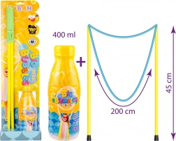 Setul TUBAN combină o soluție dovedită pentru bule mari și un șnur practic, datorită căruia veți crea cu ușurință bule uriașe și efecte de bule impresionante. Este suficient să turnați soluția într-un bol, să înmuiați șnurul și, cu o mișcare blândă a mâinilor, să formați pelicule lungi care se transformă în bule strălucitoare.