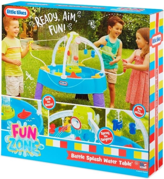 Masa de joc cu apă oferă distracție nesfârșită în zilele calde de vară. Copiii pot ținti la ținte, umple cilindri cu apă sau scufunda bărcile adversarilor.