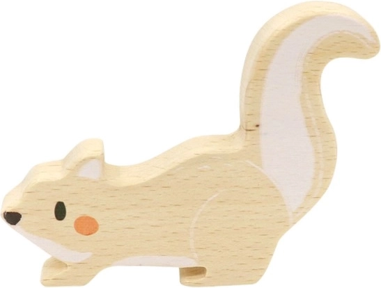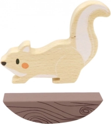 Jocul este fabricat din lemn masiv durabil, cu culori și lacuri sigure pentru sănătate. Datorită designului universal, veverița și ghindele pot fi folosite și în alte jocuri sau ca decor stilat pentru camera copilului. Conține baza, figurina veveriță și 12 piese de joc.