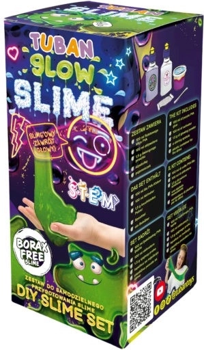 Setul Tuban Super Slime oferă o experiență unică în crearea de slime, care strălucește în întuneric. Este suficient să urmezi instrucțiunile și să creezi propriul tău slime violet, care arată grozav!