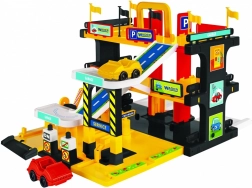 Acest garaj de service pe mai multe niveluri oferă copiilor un mediu realist pentru jocurile lor preferate cu mașinuțe. Liftul mută vehiculele între cele trei etaje, iar rampele line duc la spălătorie, stația de alimentare și la service. Jocul stimulează creativitatea, dezvoltă motricitatea fină, coordonarea mână-ochi și îi învață orientarea în spațiu și regulile de bază ale circulației rutiere.
