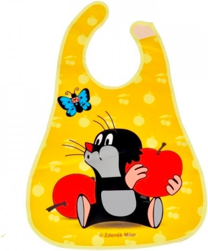 Bavețică drăguță pentru copii cu motivul Cârtiței (Krteček) protejează hainele la fiecare masă și aduce în același timp un zâmbet pe chipul celor mici. Datorită închiderii cu arici, se pune și se scoate ușor și stă confortabil atât fetelor, cât și băieților.