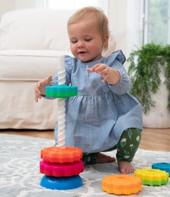 O jucărie cu care se antrenează și motricitatea copilului. 6 discuri diferite se învârt în jos ca un tirbușon și se așază după propria imaginație. Discurile alternează forme de flori și stele, iar fiecare are două culori.