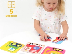 Acest set de prime puzzle-uri de la CzuCzu este ideal pentru copiii care încep să potrivească piese. Ilustrațiile vesele cu vehicule îi motivează la joacă, dezvoltă imaginația și sprijină învățarea naturală prin distracție. Datorită structurii din 4 piese, dificultatea este adecvată, iar copilul se bucură rapid de succes.