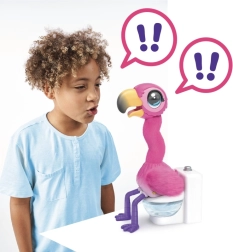 Faceți cunoștință cu flamingoul roz care va stârni râsul oricărui copil. Iubește să fie hrănit cu nisipul special Aqua, după care trebuie să meargă rapid la toaletă – acest „caca” amuzant este sigur, iar nisipul poate fi refolosit. Flamingoul mai și vorbește, repetă ceea ce aude și prezintă cântec și dans.