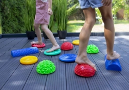 Pista de echilibru senzorială este compusă din șase elemente colorate cu texturi diferite, care susțin echilibrul, coordonarea mișcărilor și percepția tactilă. Copiii pot crea trasee variate, le pot aranja în șiruri sau cercuri și pot trece peste ele în siguranță.