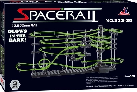 SPACERAIL Glow este un set de construcție creativ pentru pasionații de tehnică, logică și inginerie. Din piese din plastic și metal și fir fosforescent vei asambla o pistă elaborată pentru bile pe o bază stabilă. În timpul construcției modelezi arcuri, bucle și coborâri și reglezi trecerea ideală a bilelor.