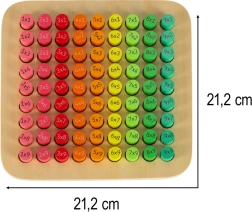 Acest tabel mare din lemn pentru tabla înmulțirii este un instrument ideal pentru școlari de la 7 ani. Datorită cuburilor clare cu exerciții și rezultate, copiii învață înmulțirea vizual și jucăuș. Designul colorat crește lizibilitatea și sprijină memorarea mai ușoară.
