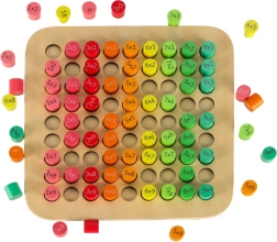 Descoperă o modalitate distractivă de a învăța tabla înmulțirii! Acest tabel educațional din lemn de calitate, cu cuburi colorate, îi ajută pe copii să stăpânească rapid și ușor bazele matematicii. Pe o parte a cubului este exercițiul de înmulțire, iar pe cealaltă rezultatul corect. Jucăria susține concentrarea, gândirea logică și memoria și, datorită culorilor vii, motivează la învățare.