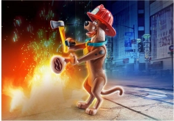 Scooby, în echipament de pompier, este pregătit să stingă orice incendiu și să salveze orașul. Setul include figurina Scooby, o cască de pompier și alte accesorii, datorită cărora copiii pătrund cu ușurință în lumea misiunilor de salvare. Piesele sunt din plastic de calitate, igienic și ușor de curățat, care rezistă în timp.
