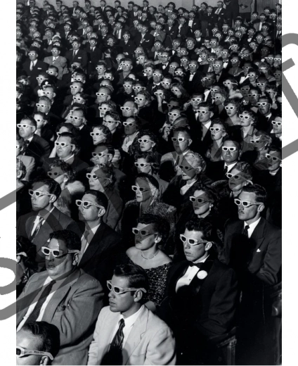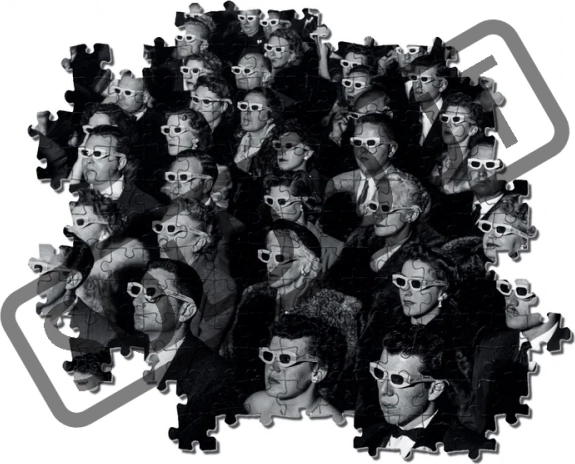 Fotografia clasică a publicului cu ochelari 3D aduce stil interiorului și un contrast pronunțat. După asamblare, imaginea este pregătită pentru înrămare.