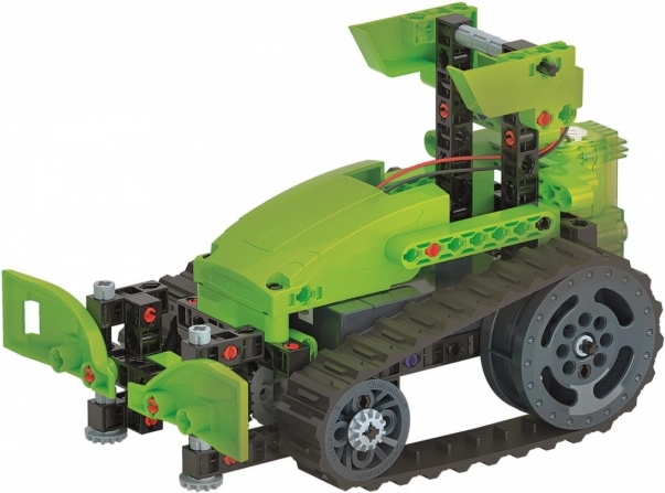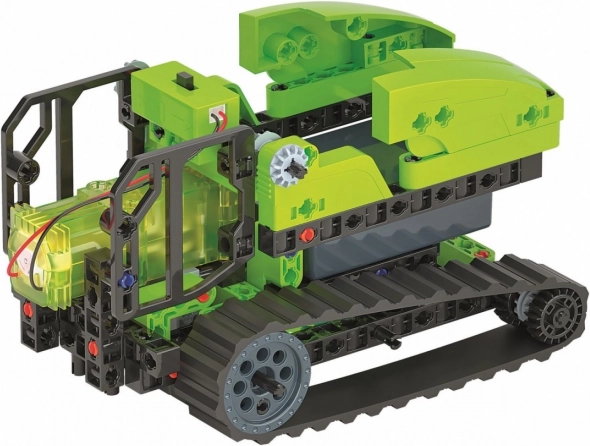 Descoperiți lumea fascinantă a mecanicii cu kitul de construcție tractor cu șenile. Cu peste 200 de piese, puteți construi 20 de modele diferite și explora aplicațiile tehnice și funcțiile acestui set uimitor. Tractorul este echipat cu un sistem de acționare mecanic pentru simularea utilajelor agricole reale.