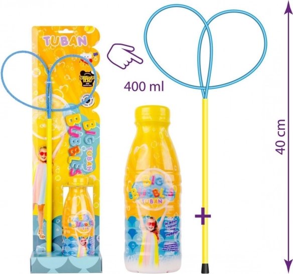 Setul include nu numai un cerc cu înălțimea de 40 cm cu mâner de plastic, dar și un material special care absoarbe lichidul pentru bule și mai bune.