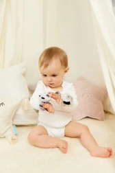 Descoperă zornăitoarea adorabilă pentru încheietură cu motiv de maimuță și panda, care stimulează simțurile bebelușului și susține dezvoltarea naturală. Modelele contrastante atrag atenția, iar sunetul moale de zornăit este plăcut și neagresiv. Datorită scaiului ajustabil, zornăitoarea stă confortabil pe mânuța mică și poate fi, de asemenea, ținută ca o jucărie obișnuită.