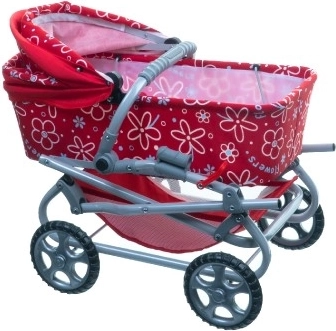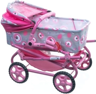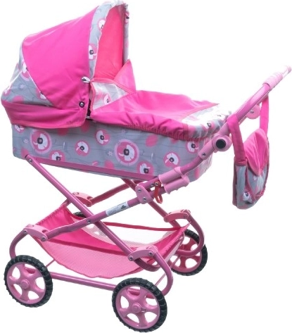 Oferiți copiilor dumneavoastră distracție cu acest cărucior stilat pentru păpuși. Datorită ramei ușoare din metal și a roților mai mari, oferă o manipulare ușoară și o plimbare lină. Căruciorul este echipat cu o cuva acoperită cu husă, un coș și o practică geantă pentru schimbat scutece.
