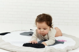 Covorașul senzorial de joacă Panda GAGAGU este conceput pentru joacă confortabilă și sigură încă din primele luni. Datorită culorilor contrastante, capitonării moi și materialelor atent alese, ajută la dezvoltarea vederii, a simțului tactil și a motricității fine. Designul drăgălaș al pandei încălzește atmosfera oricărei camere de copil.