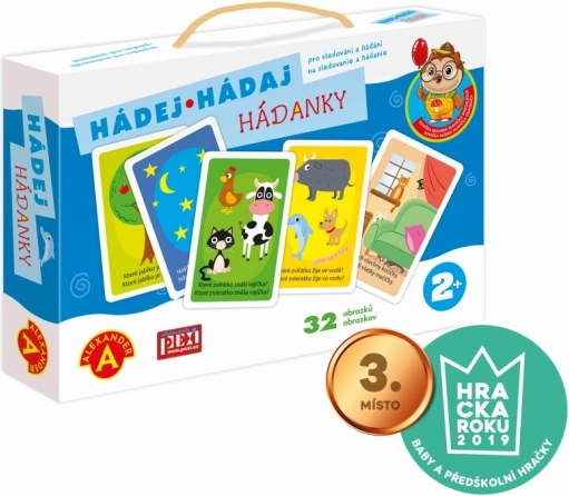 Jocul face parte din seria „Bufnița căpșor înțelept”, premiată ca JUCĂRIA ANULUI 2019 la categoria „Baby și preșcolar”. Cutia solidă cu mâner facilitează transportul și depozitarea. În pachet găsiți 16 plăcuțe mari din carton cu ilustrații colorate, care oferă în total 32 de ghicitori ilustrate.