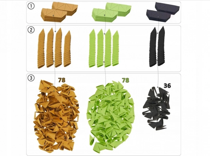- Conține instrucțiuni detaliate pe hârtie și un video-ghid disponibil online, în care designerul seriei San San Oo prezintă pașii de pliere.