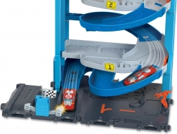 În modul de curse, plasează 2 mașinuțe 1:64 în lift, ridică-le sus, activează poarta și urmărește-le cum coboară pe spirale spre finish. În modul cu o singură pistă, turnul atinge aproximativ 64 cm și oferă multă viteză și distracție. Setul este compatibil cu alte piste HOT WHEELS, astfel încât poți crea ușor un oraș vast plin de provocări de cascadorie (seturi suplimentare vândute separat). Culorile și decorațiunile pot varia.