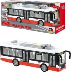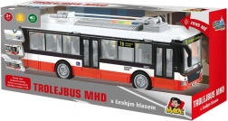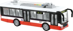 Acest troleibuz detaliat oferă copiilor o experiență autentică a transportului urban. Jucăria redă anunțuri de stații în limba cehă (Gara Centrală, Teatrul Municipal, Grădina Zoologică) și este completată de efecte luminoase atractive. Datorită mecanismului inerțial, este suficient să împingi ușor troleibuzul pentru a porni înainte.