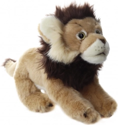 Leu din pluș cu dimensiunile aproximative 28 x 23 x 12 cm (fără coadă). Lungimea cozii aprox. 13 cm. Vârsta 0+