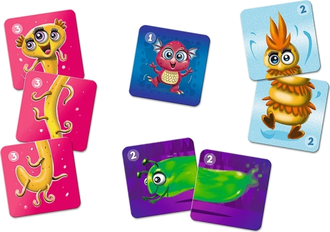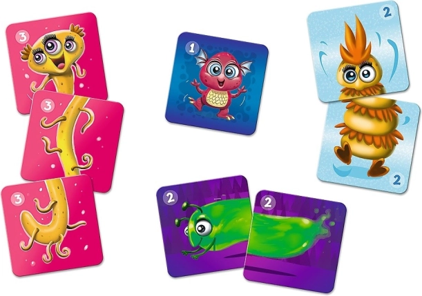 Fiecare card are pe el imaginea unui monstrușor drăgălaș, ceea ce sporește atractivitatea pentru atenția celor mici. Ambalajul într-o cutie cu mâner este practic pentru transport ușor, astfel încât poți lua această distracție oriunde cu tine.