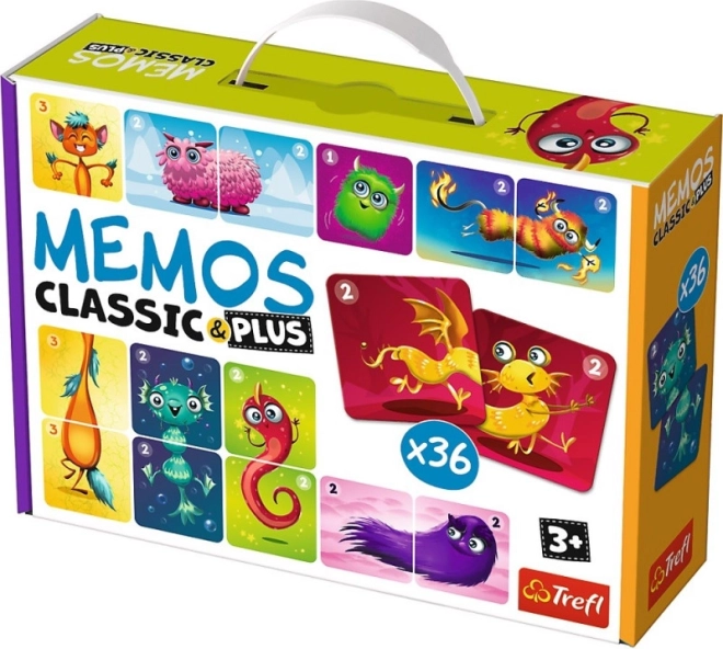 Pexeso Classic & Plus Monstruoși drăgălași 3‑în‑1 este ideal pentru copiii mici care adoră noile provocări. Cu acest joc, copiii pot începe cu varianta simplă și pot încerca treptat niveluri mai dificile. Jocul conține 36 de carduri mari din carton, cu ilustrații drăgălașe, care servesc nu doar la exersarea memoriei, ci și la îmbunătățirea concentrării.
