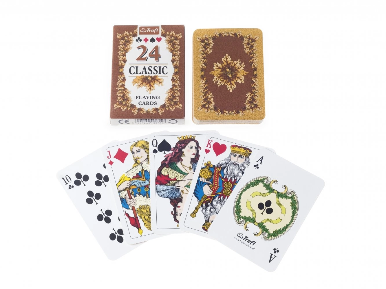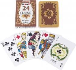 Cărțile de joc clasice Muduko Classic, cu motiv de frunze de stejar, sunt ideale pentru jocurile de cărți îndrăgite. Acest set compact conține 24 de cărți de la nouă la as, cu notație internațională pentru culori și figuri, și se remarcă prin design tradițional și calitate superioară a execuției de la producătorul Trefl-Kraków.