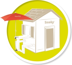 Umbrelă de soareUmbrelă de soare pentru protecție împotriva soarelui și ploii, atașată la masa de grădină SMOBY cottage.