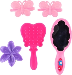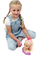 Capul de coafat blond cu accesorii este o alegere perfectă pentru micile stiliste care iubesc coafurile și jocul creativ. Părul des și de calitate se piaptănă și se modelează ușor, astfel încât veți reuși cozi elegante, împletituri franțuzești și o multitudine de codițe mici. Setul include accesorii practice care ajută la fiecare transformare.
