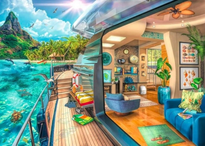 Descoperă puzzle-ul de calitate RAVENSBURGER cu motivul unei croaziere tropicale. Datorită tehnologiei SoftClick și conceptului Perfect Age Fit, te vei bucura de îmbinări precise ale pieselor și asamblare confortabilă. 1000 de piese, textură naturală de in pentru imagini clare și alegerea ideală pentru fani ai puzzle-urilor de la 14 ani.