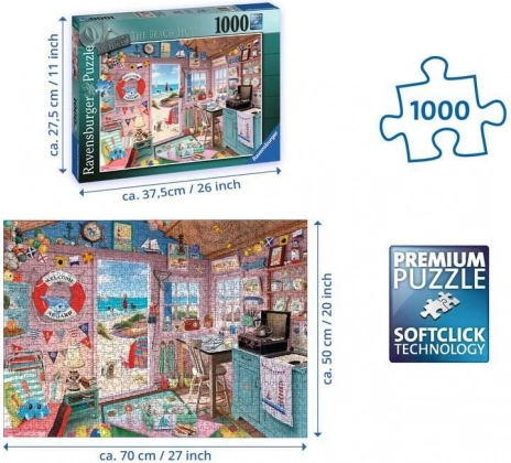 Puzzle-ul Ravensburger cu motivul căsuței de pe plajă este o bijuterie pentru toți pasionații de puzzle. Realizat cu grijă din 1000 de piese care se îmbină perfect, vă permite să creați o imagine superbă. Acest puzzle nu doar încântă prin atractivitatea sa estetică, ci ajută și la dezvoltarea abilităților de rezolvare a problemelor, a atenției la detalii și oferă un sentiment de reușită la finalizare.