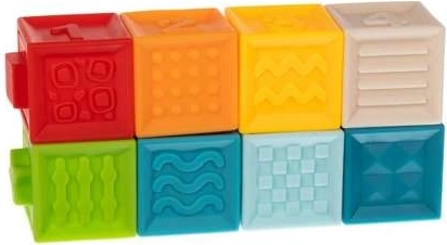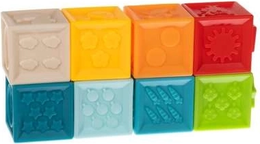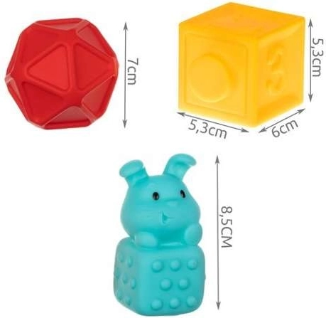 Au culori vii frumoase, care stimulează perfect dezvoltarea copilului dumneavoastră. Datorită adânciturilor și proeminențelor speciale, copilul poate îmbina cuburile în șiruri. Jucăriile senzoriale formează abilitatea de a primi, înțelege și reacționa la stimulii din mediu. Cu ajutorul cuburilor, putem îmbunătăți coordonarea mișcărilor și stimula simțurile, cum ar fi auzul, văzul sau atingerea. Cuburile emit un sunet clasic fin la apăsare, care va fi o experiență plăcută și interesantă pentru copilul dumneavoastră. Cuburile sunt fabricate dintr-un material special moale, care este foarte moale și ușor și nu conține substanțe nocive, astfel încât pot fi folosite ca inel de dentiție pentru bebeluși. Blaturile senzoriale sunt vizual atrăgătoare și au un finisaj atent, precis. Culorile lor vii, diferitele forme și dimensiuni vor atrage privirea copilului și cu siguranță îl vor încuraja să se joace.