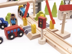 Circuitul de tren din lemn este jucăria ideală pentru copii, permițând crearea de diferite peisaje și scenarii. Setul conține un total de 70 de piese, care oferă nesfârșite posibilități de construire și joacă. Joaca cu acest circuit dezvoltă abilitățile motorii fine, coordonarea ochi-mână și gândirea logică.