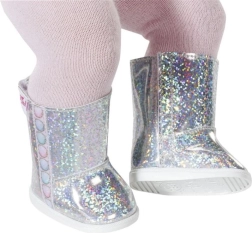 Cizmele argintii cu luciu spectaculos oferă păpușii stil pentru orice aventură de iarnă.