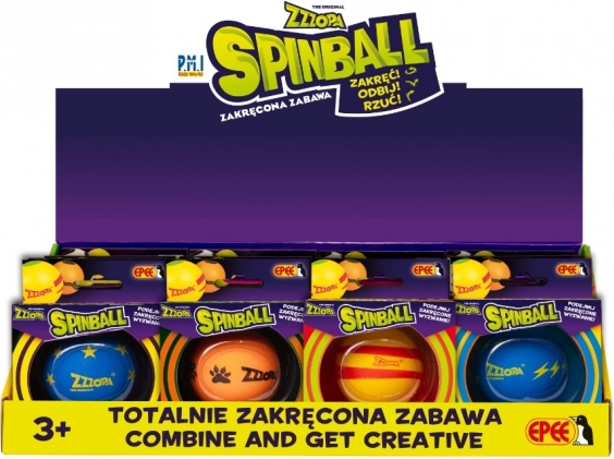 Spinball este o distracție absolut trăznită! Are o tehnologie unică datorită căreia se rotește lin, ricoșează bine și este grozavă pentru tot felul de trucuri. Pune mingea pe degete mari și încearc-o să o rotești sau rotește-o și ricoșeaz-o de pe sol astfel încât să cadă în ținta aleasă de tine (de exemplu într-un recipient). Distracția cu SpinBall nu se termină niciodată! Experimentează și inventează-ți propriile trucuri.