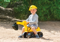 Excavatorul este conceput pentru joacă sigură atât în exterior, cât și în interior. O siguranță practică blochează rotirea la transport sau în timpul jocului celor mai mici, iar suprafața mare pentru ședere oferă confort și siguranță. Partener ideal pentru nisipar, grădină și locuri de joacă pentru copii.