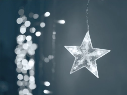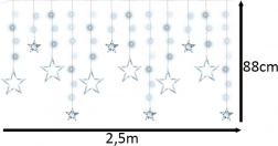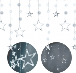 Această cortină luminoasă cu steluțe transparente de diferite dimensiuni iluminează ferestrele, pereții și colțurile foto. Culoarea alb rece creează un aspect curat, festiv și o lumină delicată, ideală pentru decorațiuni de Crăciun, camera copiilor sau seri romantice.