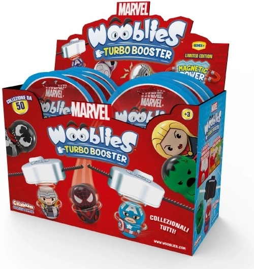 Descoperă distracția cu colecția Wooblies inspirată de supereroii MARVEL! Fiecare pachet include o figurină magnetică Wooblies (surpriză), un lansator Turbo Booster pentru rotire rapidă și lansare, o cartolină de colecție și un pliant cu jocuri și listă. Bucură-te de posibilități infinite de joacă, dueluri cu prietenii și colecționează toate personajele.