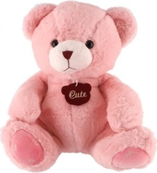 Ursulețul de pluș roz este realizat din material moale, ideal pentru îmbrățișări și oferind un sentiment de siguranță.