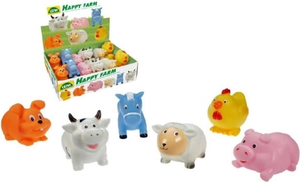 Descoperiți distracția la baie și la joacă pe uscat cu animăluțele din cauciuc care stropesc, din vesela fermă. Datorită materialului plăcut și moale, se strâng ușor în mână, iar copiii le vor iubi pentru aspectul prietenos și manipularea simplă. Jucăria este proiectată cu atenție la siguranța celor mici.