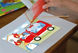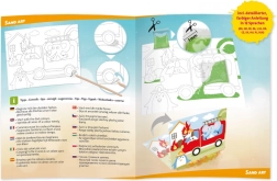 - Utilizare ușoară – șabloanele autoadezive ghidează copiii pas cu pas