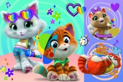 Maxi puzzle-ul este alcătuit din 24 de piese rezistente și ușor de prins, adaptate mânuțelor copiilor. Tema îndrăgită a Pisicilor fericite din 44 CATS îi încurajează pe copii să asambleze și le stimulează concentrarea, răbdarea și percepția formelor și culorilor.