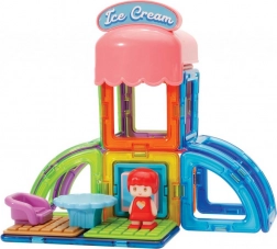 Setul de construcții Magformers Orășel Cofetărie este compus din 14 forme magnetice și 8 accesorii funcționale. Permite crearea de construcții arhitecturale diverse ale cofetăriilor conform imaginației proprii. Adăugând alte piese Magformers, construcțiile tale vor fi și mai mari și mai diverse. Construcțiile finale au forma unei secțiuni parțial deschise, unde sunt vizibile atât soluțiile exterioare, cât și cele interioare, care pot fi modificate.